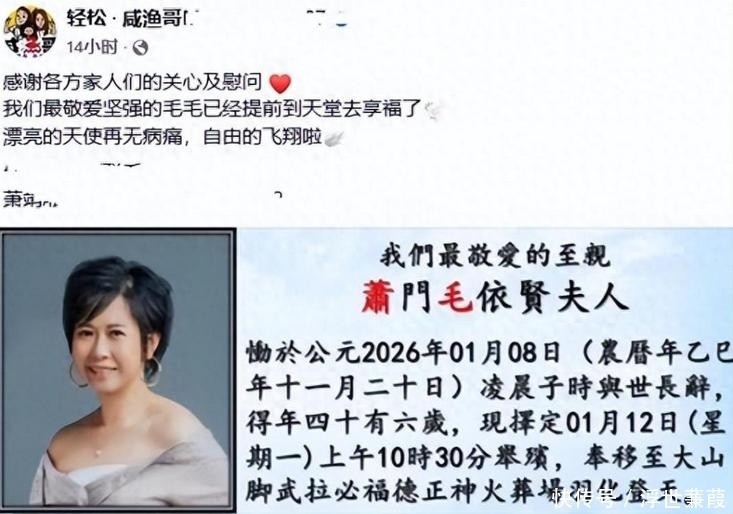 1日,音乐领域传来令人震惊的消息:马来西亚实力派女歌手毛依贤因大肠癌复发不幸离世,年岁。