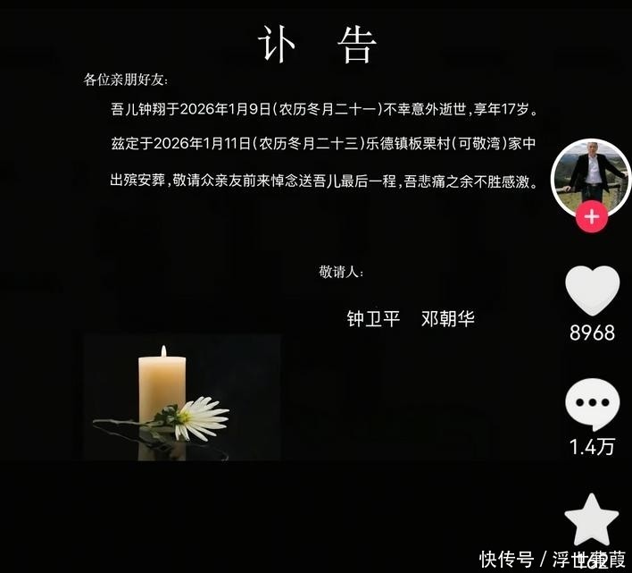 然而这一切日戛然而止。当天,父亲含泪发布讣告,宣布儿子因突发意外不幸离世,消息瞬间引爆网络关注。